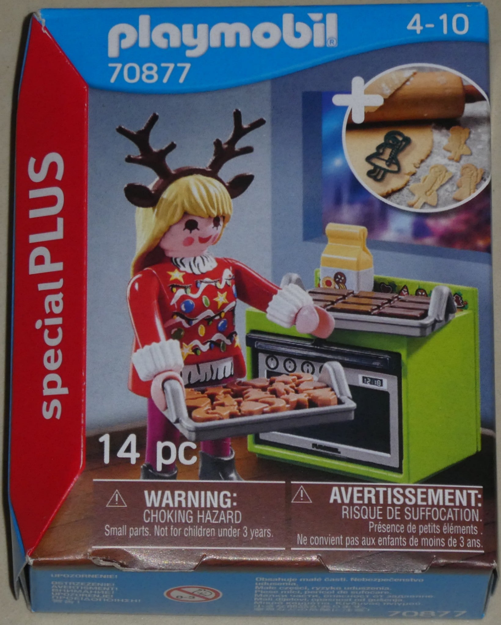 - Als Zubehör: 1 Backblech mit Kuchen, 1 Backblech mit Plätzchen, 1 Backofen, 1 Plätzchentüte, Rentierohren als Kopfschmuck für die Bäckerin